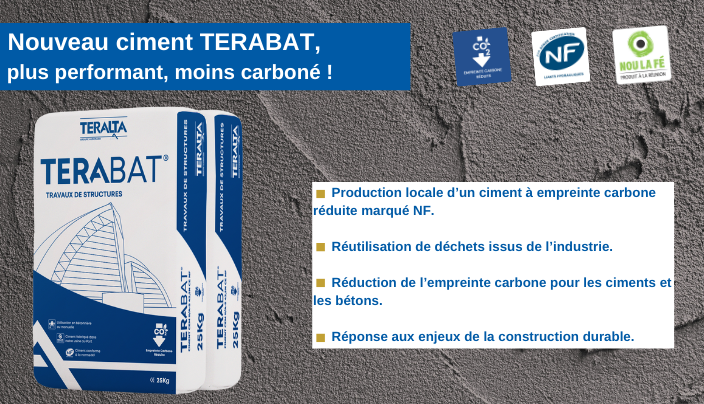 Teralta est fier d’annoncer le lancement d'un second ciment à empreinte carbone réduite ! Formulé et fabriqué à La Réunion dans sa nouvelle usine ultramoderne du Port, ce nouveau ciment ouvre la porte d’une construction plus durable.